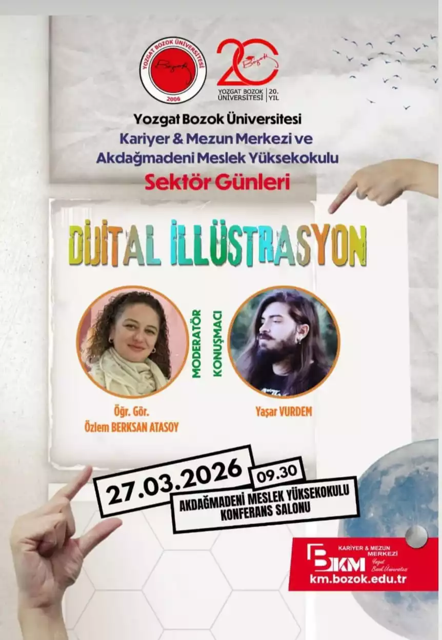 Grafik Bölümü Misafir Öğr. Elm. Yaşar Vurdem Yozgat Bozok Üniversitesi Akdağmadeni Meslek Yüksek Okulu Grafik Tasarımı Bölümünde Dijital İllüstrasyon konusunda davetli konuşmacı olarak söyleşi gerçekleştirdi.